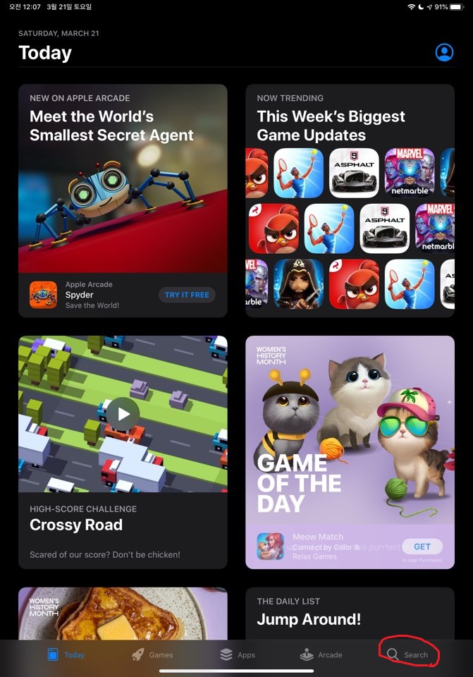 앱스토어 바뀌셨다면 우측 하단에 Search버튼을 눌러