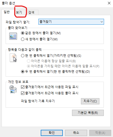 왼쪽위에 보기 버튼 클릭